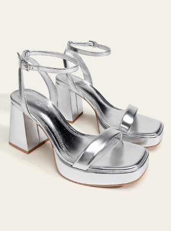 Estas sandalias de Stradivarius tienen un estilo moderno y llamativo. Están disponibles en un elegante color plateado que añade un toque de brillo y sofisticación a cualquier atuendo. Una característica distintiva de estas sandalias es su plataforma, lo que significa que tienen una suela elevada en la parte delantera que ayuda a equilibrar la altura del tacón y proporciona mayor comodidad al caminar. Esta plataforma también aporta un aspecto estilizado y vanguardista. La altura del tacón de estas sandalias es de 10 cm, lo que proporciona un aumento significativo en la estatura y ayuda a estilizar la figura. Precio con descuento del 53%: 12,99 euros.