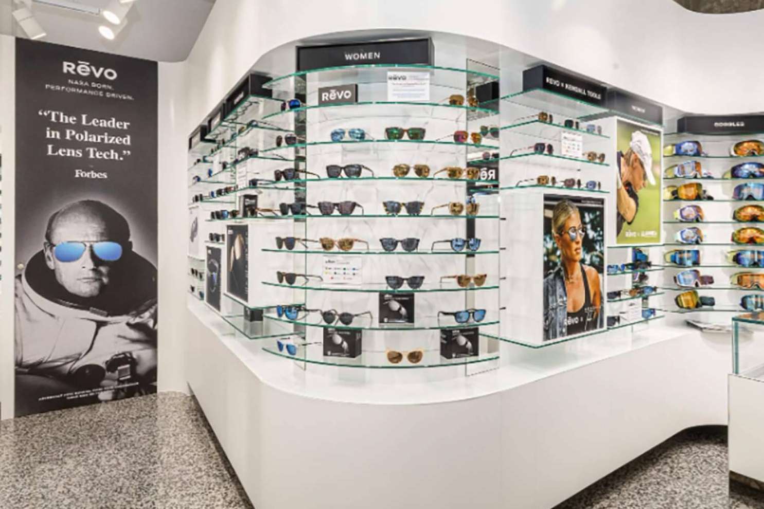 La marca norteamericana escogió levantar su primera tienda en la Baixada de la Llibreteria 10 del barrio Gótico de Barcelona. Aquí se puede encontrar toda la colección de gafas Rēvo con su diseño de lentes polarizadas, basado en la tecnología de la NASA, para proteger los ojos de los rayos del sol y mejorar la visión.