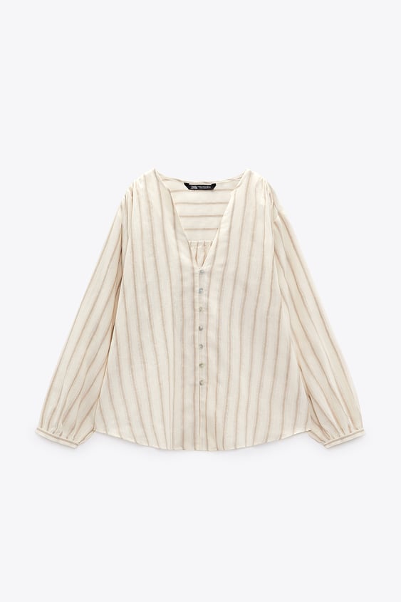 7Blusón rayas con lino de Zara