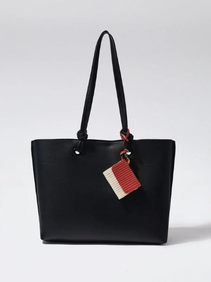 El bolso shopper everyday con colgante de Parfois es un accesorio versátil y funcional que se adaptará a todas tus necesidades diarias. Confeccionado en poliuretano de alta calidad, este bolso ofrece durabilidad y resistencia. Cuenta con una doble asa de mano con detalle de nudos y una práctica asa bandolera ajustable y extraíble para mayor comodidad.