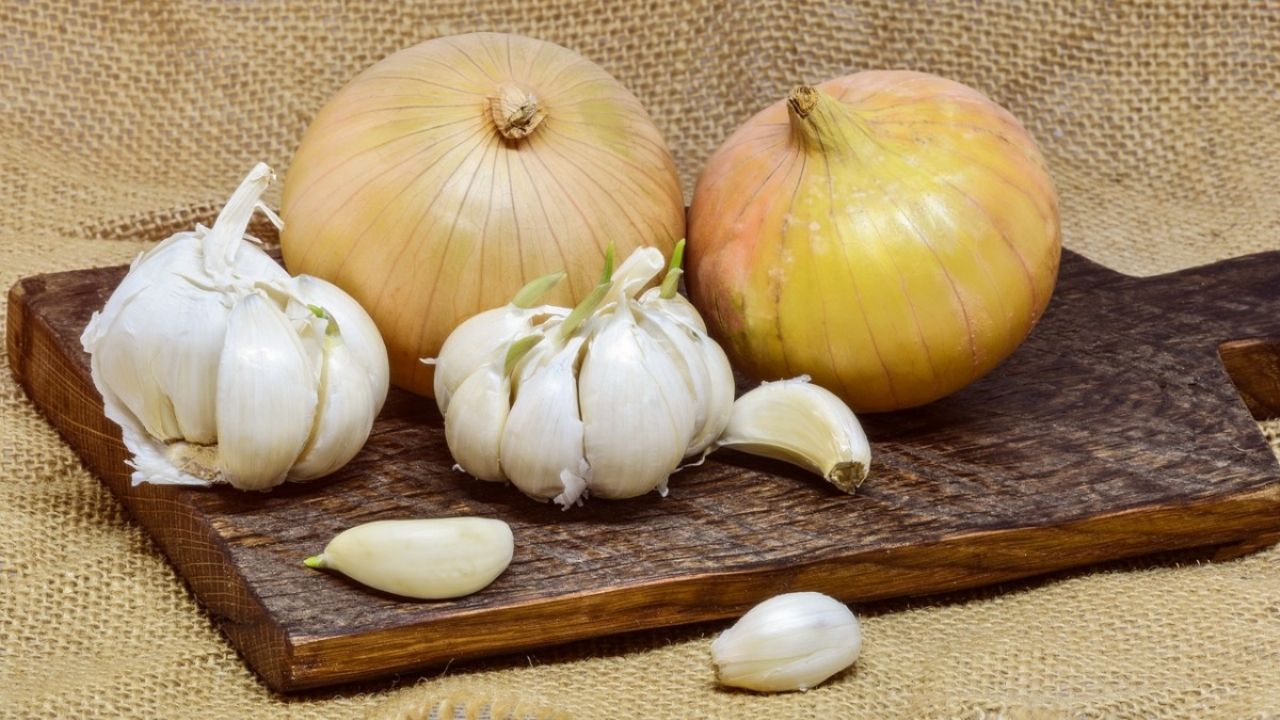 2Paso 1: Pela los dientes de ajo y la cebolleta
