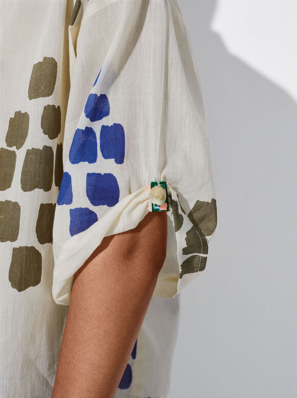 La camisa de algodón estampada de la marca Parfois es una prenda elegante y versátil que se convertirá en un elemento básico de tu armario esta temporada. Confeccionada en tejido 100% algodón, esta camisa es suave y cómoda al tacto, lo que la hace ideal para los días más cálidos del año.