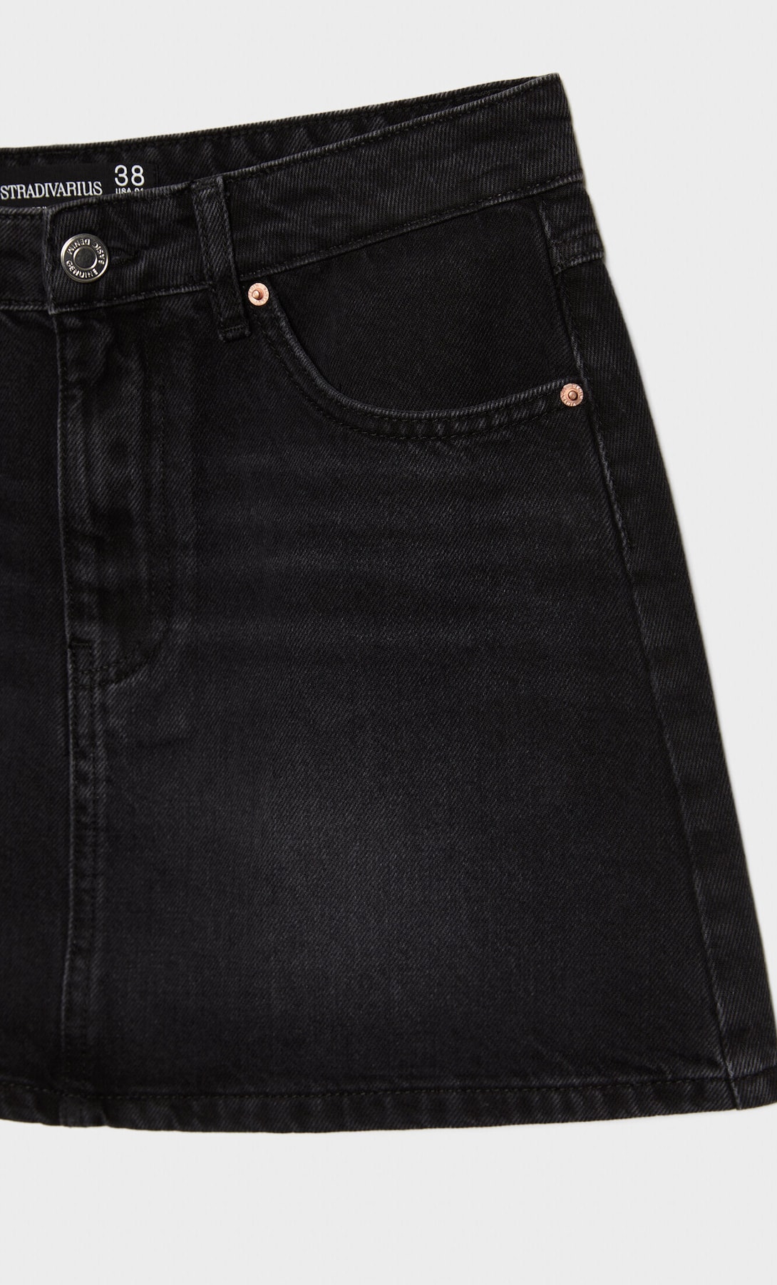 La falda mini denim de Stradivarius es una prenda moderna y versátil que complementará cualquier guardarropa. Con un corte evasé que crea un estilo femenino y juvenil, esta falda es perfecta para lucir piernas y destacar la silueta. Además, su tiro high waist ayuda a realzar la figura y aportar una apariencia estilizada.