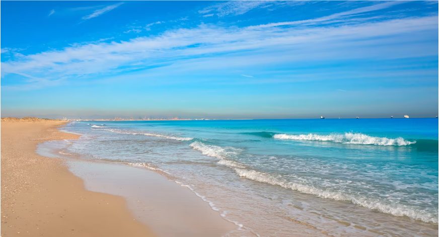 Ubicada a unos 370 kilómetros de Madrid, en Valencia, podrás disfrutar de Playa de El Saler. Este es uno de los lugares más hermosos que conseguirás en Valencia. Con una extensión de unos 5 kilómetros de longitud y una anchura media de unos 250 metros, la playa cuenta con fina arena dorada y aguas cristalinas.