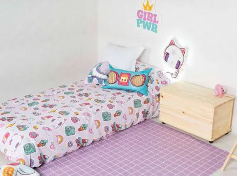 Dentro de Girl Power, se pueden encontrar fundas nórdicas, edredones, sacos, cojines de diversos tamaños y colores, sábanas, visillos y puffs. Este catálogo también incluye alfombras vinílicas, cuadros, stickers, papeles de pared y planificadores de escritorio.