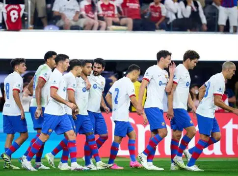 El FC Barcelona de la temporada 2023/24 arrancó esta madrugada en el SoFi Stadium de Los Angeles (California, Estados Unidos) con una derrota ante el Arsenal (5-3) de la Premier League, en un duelo loco lleno de idas y venidas en el que los blaugranas, con los fichajes de Ilkay Gündogan y Oriol Romeu en el once inicial, desaprovecharon dos ventajas en el marcador.