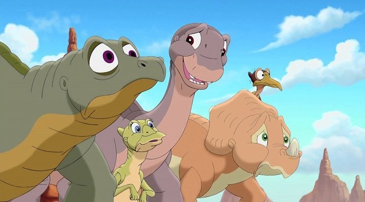No se realizaron solamente series animadas sobre los dinosaurios, sino también películas como esta, que cuentan como los dinosaurios vegetarianos al quedar sin alimento se vieron obligados a comer plantas en otras áreas, siendo atacados por dinosaurios carnívoros liderados por los temibles T-rex.