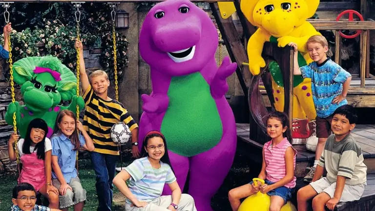El personaje es un Tiranosaurio rex fucsia y verde que se asemeja a un animal de peluche y que ha sido muy popular entre los niños desde su introducción en 1992. Barney es conocido por su personalidad alegre y amigable, y a menudo canta y baila con los niños mientras les enseña diferentes lecciones y habilidades.