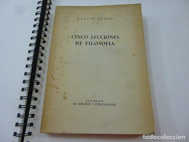 Cinco lecciones de filosofía de Xavier Zubiri, publicado por primera vez en el año 1963. Se trata de un libro en el que el autor plantea las ideas principales y estructurales de la filosofía y el objeto de conocimiento de la filosofía como ciencia a través de cinco grandes filósofos de la humanidad, Aristóteles, Kant, Comte, Bergson y Husserl, filósofos ubicados en épocas y contextos históricos totalmente distintos.