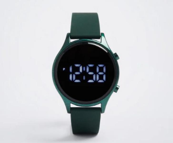 Este reloj digital con correa de silicona de Parfois es una opción asequible y atractiva en color verde con un diseño práctico. Con una esfera de vidrio cristalino, caja de zinc y aluminio, correa de silicona suave y cómoda, tapa de acero inoxidable y un grosor de caja moderado, este reloj es ideal para el uso diario. Sin embargo, ten en cuenta que no es resistente al agua, por lo que debes evitar la exposición al agua. Este reloj está disponible a un precio de 15.99€, lo que lo hace asequible y atractivo para quienes buscan una opción económica.