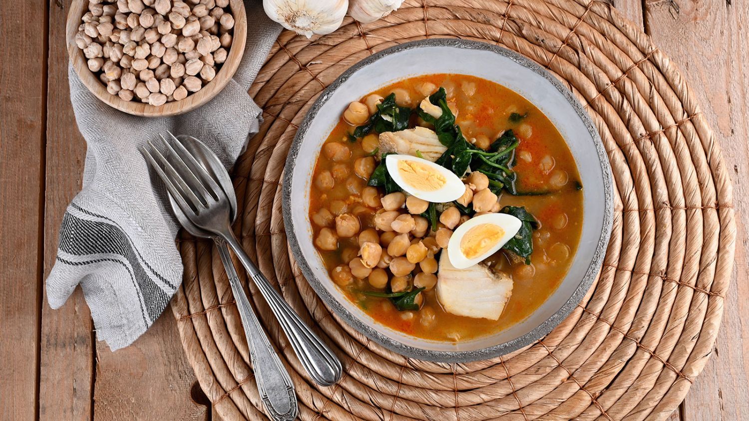 El "Garbanzos con bacalao y espinacas" o "Potaje de Vigilia" por Karlos Arguiñano es una exquisita y tradicional receta de la cocina vasca que destaca por su sabor y texturas únicas. Este plato, conocido por ser una opción durante la Cuaresma y la Vigilia. Combina la suavidad de los garbanzos con la profundidad del bacalao y la frescura de las espinacas.