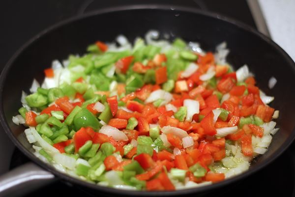 Mientras tanto, en un bol aparte, batiremos los huevos con un poco de sal y pimienta al gusto. Una vez que las verduras estén cocidas, añadiremos los huevos a la sartén y removeremos rápidamente, permitiendo que se mezclen con las verduras.