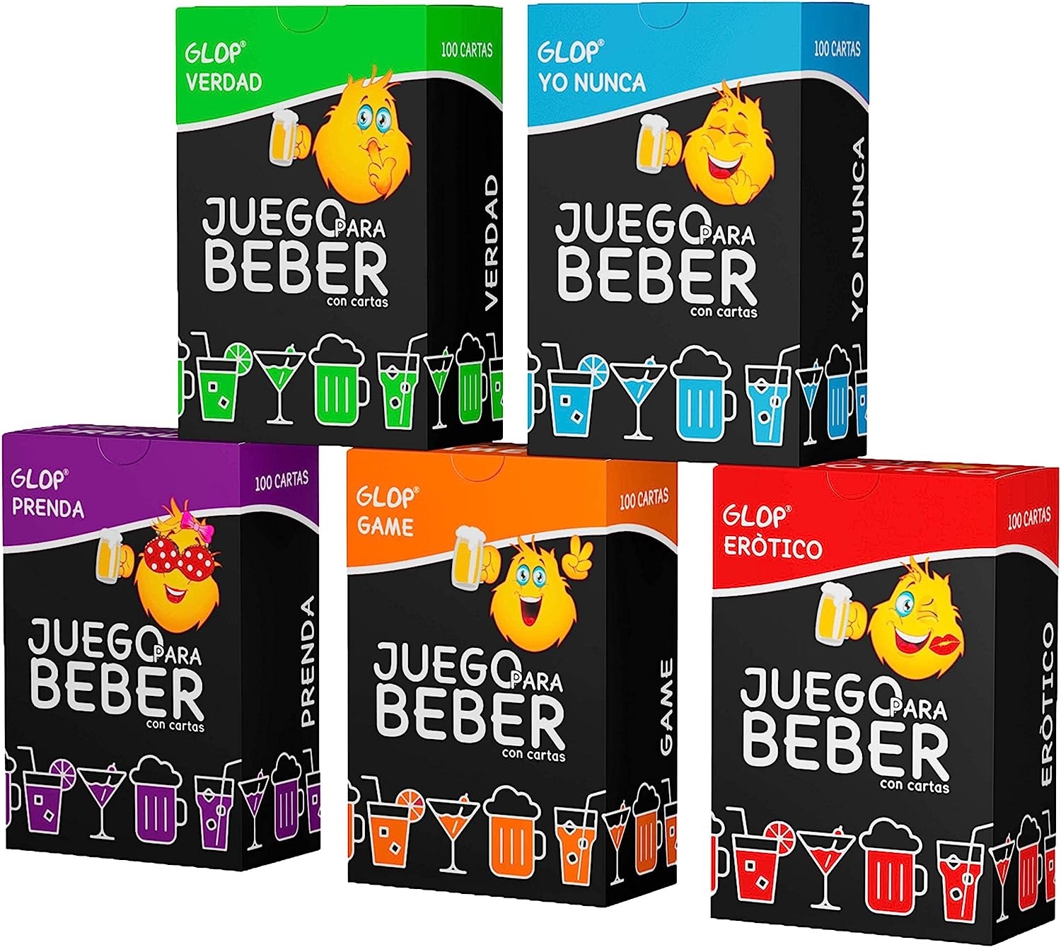 No es un juego solo sino que son 5. Porque cada uno tiene una temática diferente, en función del momento del día o de la noche que quieras disfrutar. Por un lado está el de Verdad, el de Yo nunca, Prenda, Game o Erótico. Como ves, temáticas muy variadas pero que todas ellas tienen un denominador común que son las cartas.