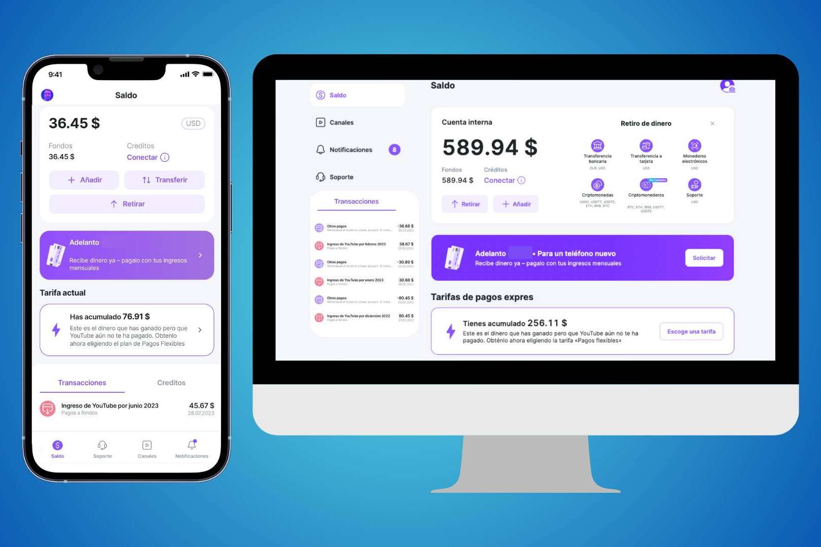 Mediante una intuitiva aplicación, los influencers pueden transferir su dinero a cuentas y tarjetas bancarias, monederos virtuales como PayPal o Capitalist, realizar transferencias P2P e incluso invertir en criptomonedas. También cuentan con justificación de ingresos automática, ya que cada transferencia genera un documento acreditativo a su nombre, para que puedan cumplir con sus obligaciones administrativas.