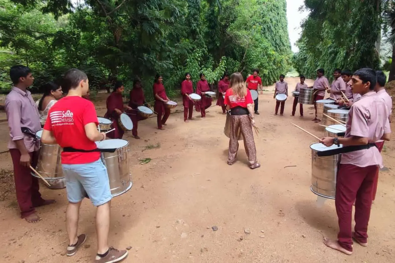De este modo, los 5 grupos de entre 15 y 25 participantes son dirigidos por 4 o 5 miembros del Proyecto Lupresti, quienes forman a varias personas locales para que puedan guiar a los demás y seguir con las actividades una vez finalizada su estancia en India. Además, SolRe Percussió entrega a quienes participan de este taller de musicoterapia solidaria un par de baquetas aportadas por distintos percusionistas catalanes, con el objetivo de que puedan profundizar su aprendizaje practicando por su cuenta.