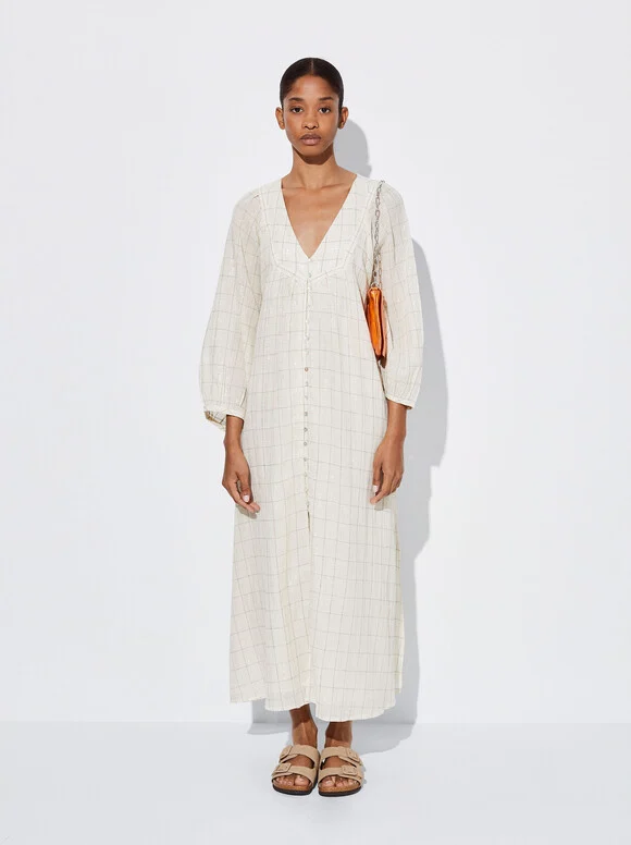 Además de su estilo impecable, este vestido cuenta con detalles adicionales que lo hacen aún más especial. Desde pequeños bordados hasta delicados remates, cada detalle ha sido cuidadosamente pensado para agregar un toque de distinción a tu apariencia. Serás la envidia de todos con este vestido de Parfois.