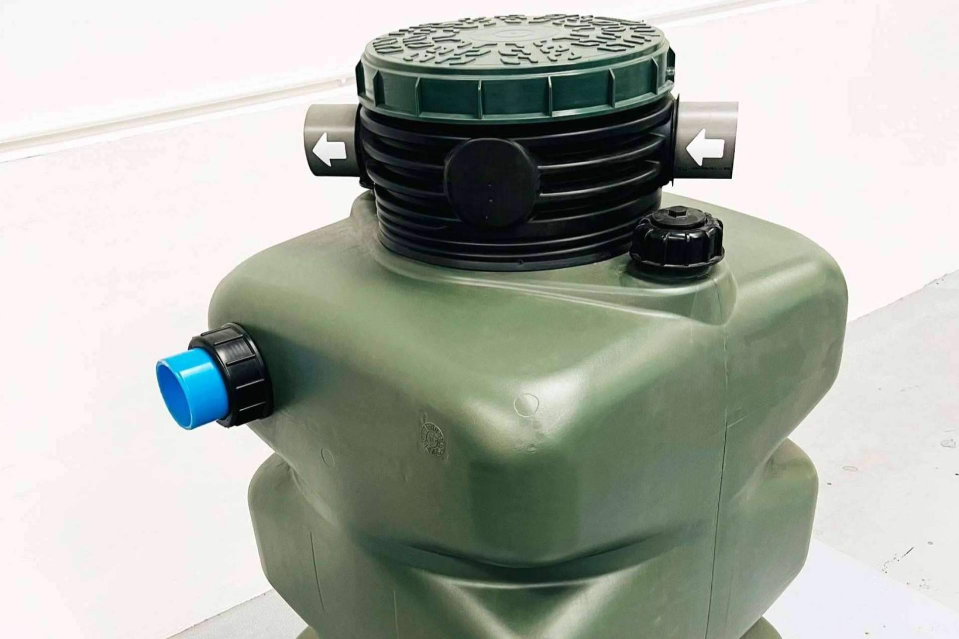Este dispositivo diseñado por Pluvial está compuesto por un recipiente de almacenamiento capaz de retener hasta 2050 litros de agua y con opción de enlazarlos entre sí e ir aumentando la capacidad de almacenamiento, por lo que es ideal para lugares lluviosos y espacios con una alta presencia de humedad. Su cierre y diseño evitan que se propaguen enfermedades por estancamiento de aguas, minimizando la presencia de plagas que puedan afectar la salud de las personas. El artefacto también tiene integrado un filtro de agua compacto de 3P Technik, el cual puede instalarse en depósitos de agua de lluvia, ya sea de plástico u hormigón, para que se pueda utilizar en lugares donde hay poco espacio para el almacenamiento.