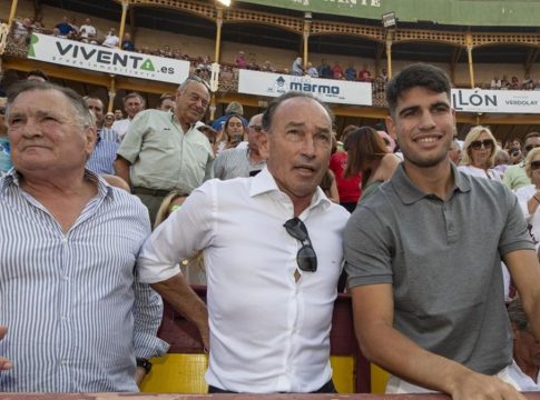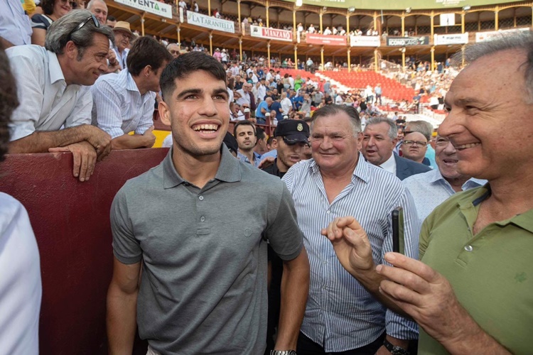 Seguidamente de ello, Carlos Alcaraz acudió a una corrida de toros de la feria de Murcia acompañado de Pepín Liria y el exseleccionador José Antonio Camacho, con quienes posó en la plaza.
