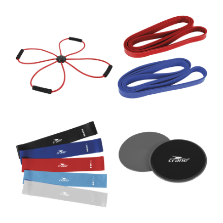 Disponibles en diferentes modelos, podrás encontrar las cintas que se ajusten a tus necesidades. El pack de 2 core sliders, o discos deslizantes, son perfectos para ejercicios de deslizamiento que fortalecen los músculos del núcleo y mejoran la estabilidad. Si estás buscando una opción más versátil, el cross expander, una banda elástica en cruz, te permitirá trabajar diferentes grupos musculares y realizar una gran variedad de ejercicios.