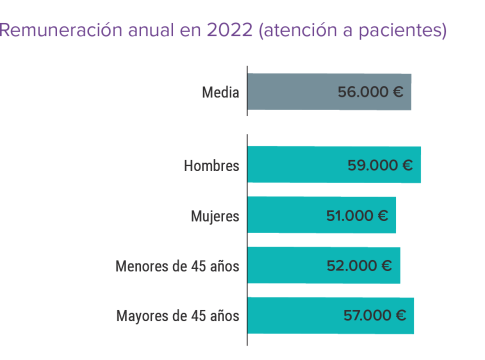 Por otra parte, los resultados desvelan que los médicos españoles perciben 56.000€ de remuneración salarial media al año por la atención directa a sus pacientes, incrementada en 17.000€ cuando se trata de especialistas y cerca de 9.000€ menos en el caso de mujeres médicos. El descontento se hace patente cuando dos de cada cinco encuestados consideran que deberían cobrar entre un 26% y un 50% más.