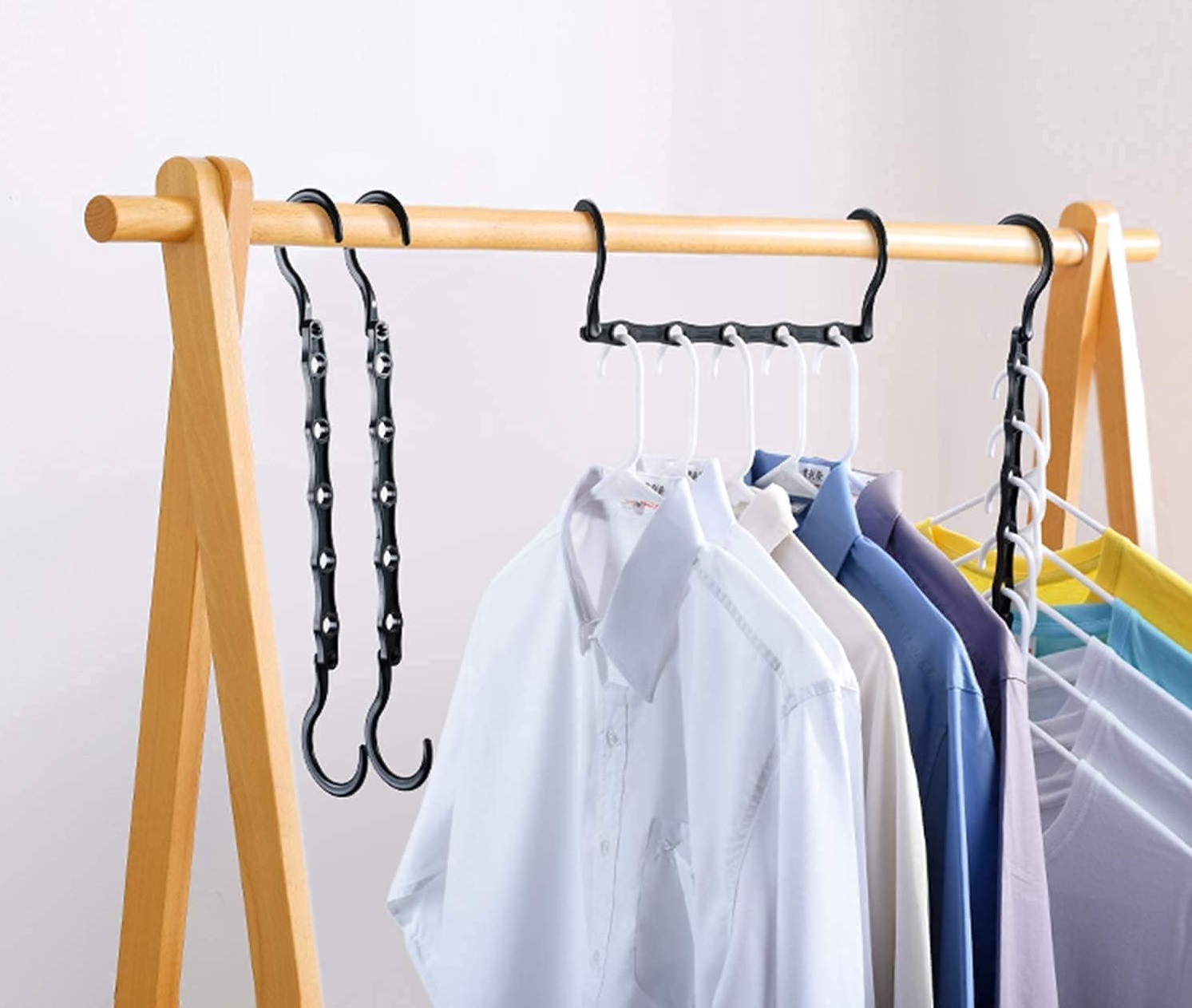 Sí, lo de mágico es por la alta cantidad de espacio que sí que puede ahorrar y que te encantará disfrutarlo. En este caso hablamos de las que se conocen como perchas mágicas y es que, se trata de una especie de colgadores que tienen dos posiciones para ser colocadas en el armario. Puedes colocarlos de manera horizontal o vertical.