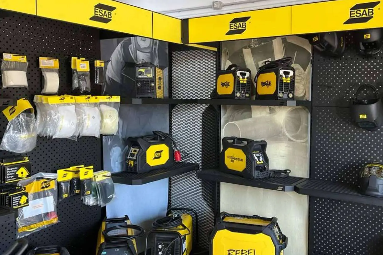 En su sección de soldadura, las pantallas de soldadura son uno de los artículos más buscados por los clientes, junto con las pinzas porta electrodos, los blisters de policarbonato y los equipos Inverters de la marca ESAB.
