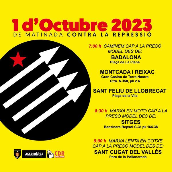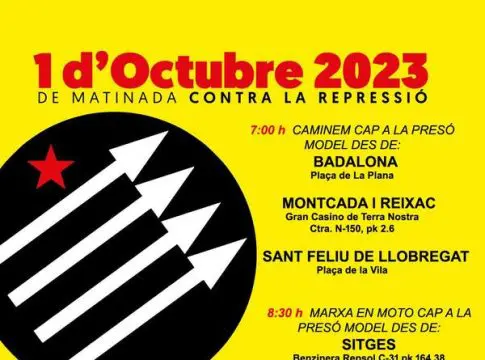 Las otras entidades convocantes son Desobediencia Civil Catalunya, la Plataforma Antirepressiva de Ponent y la Plataforma Antirepressiva de Barcelona, así como la sectorial de Personas Represaliadas de la Assemblea Nacional Catalana (ANC).