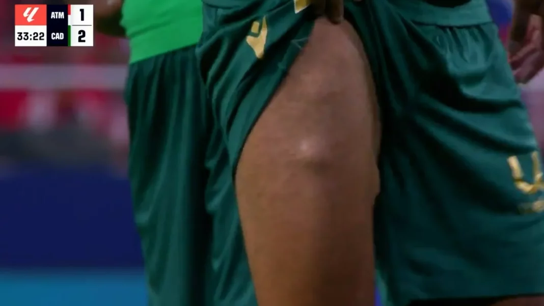 Visiblemente cojeando, pero lo que más causó dudas fueron esos tres bultos en su muslo, que no pasaron desapercibidos para los presentes.