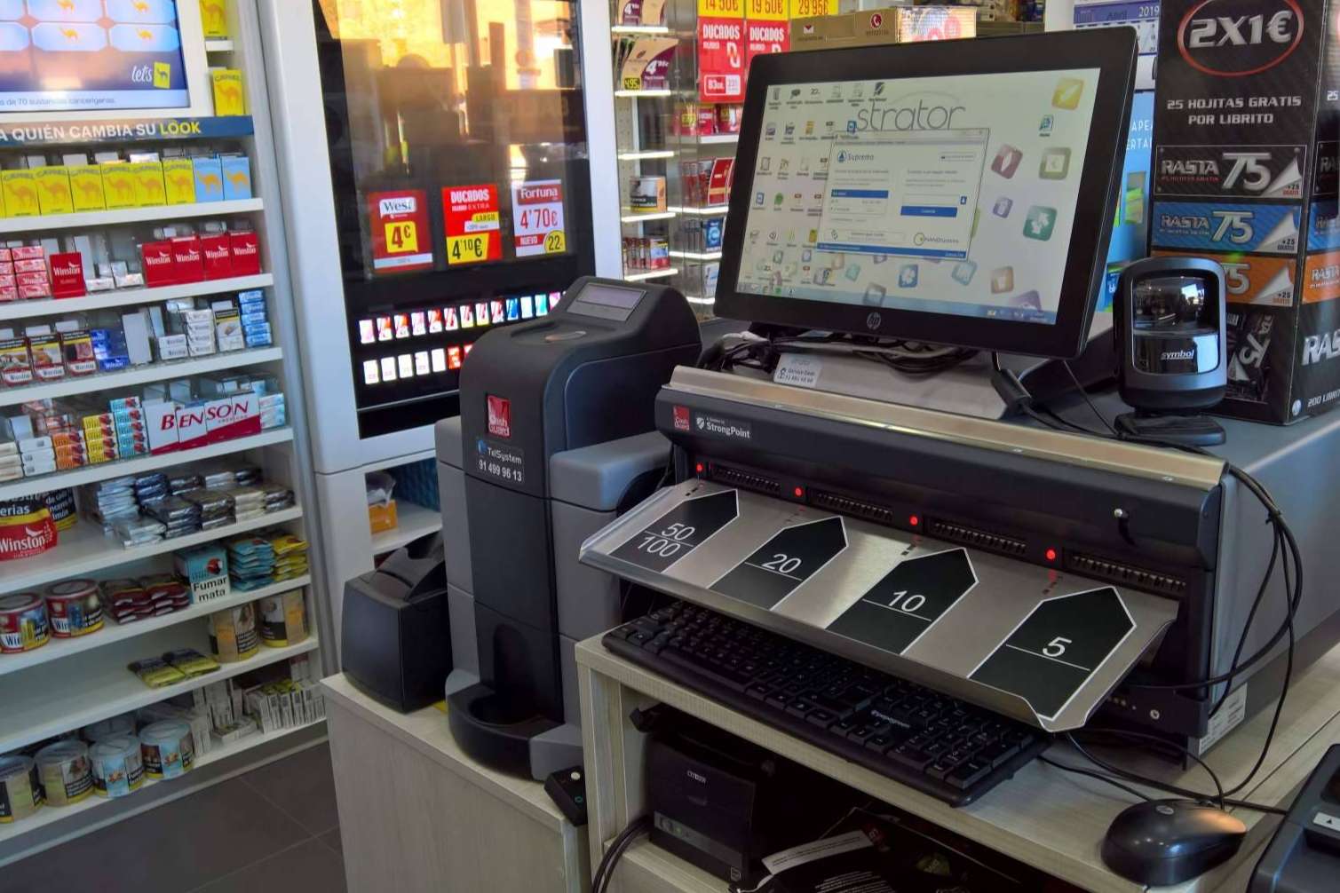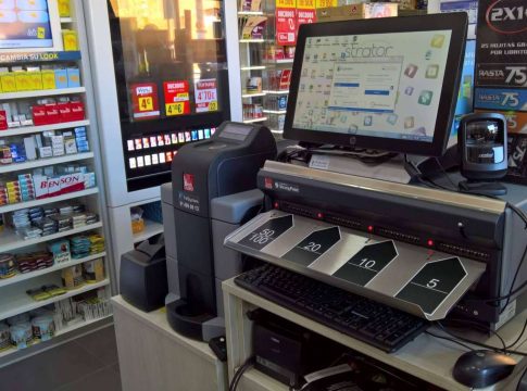 Luego, al aceptar la venta se introduce el dinero en la caja que, gracias a su sistema de reconocimiento y clasificación automática de los billetes, recibe el pago y devuelve el cambio exacto, en los casos en que se requiera.