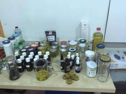 Durante la formación, cada alumno fabrica sus propios productos, como bálsamo labial de miel, acondicionador corporal sólido, ungüento reparador con propóleo y caléndula, champú sólido con extracto de polen, también gel de baño con avena y miel, crema con cera de abeja y mascarilla facial con miel.