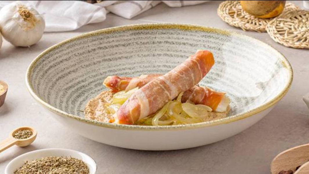 El jueves, Lidl nos invita a un festín culinario con unas deliciosas pechugas de pollo con salsa de nueces. Para prepararlo, comenzamos disponiendo cebolla cortada en juliana en una bandeja para horno, sazonada con aceite, sal y pimienta. Luego, cortamos las pechugas de pollo en porciones, las enrollamos con lonchas de jamón serrano y las colocamos sobre la cebolla. Después de hornear a 190º durante aproximadamente 15 minutos, reservamos.