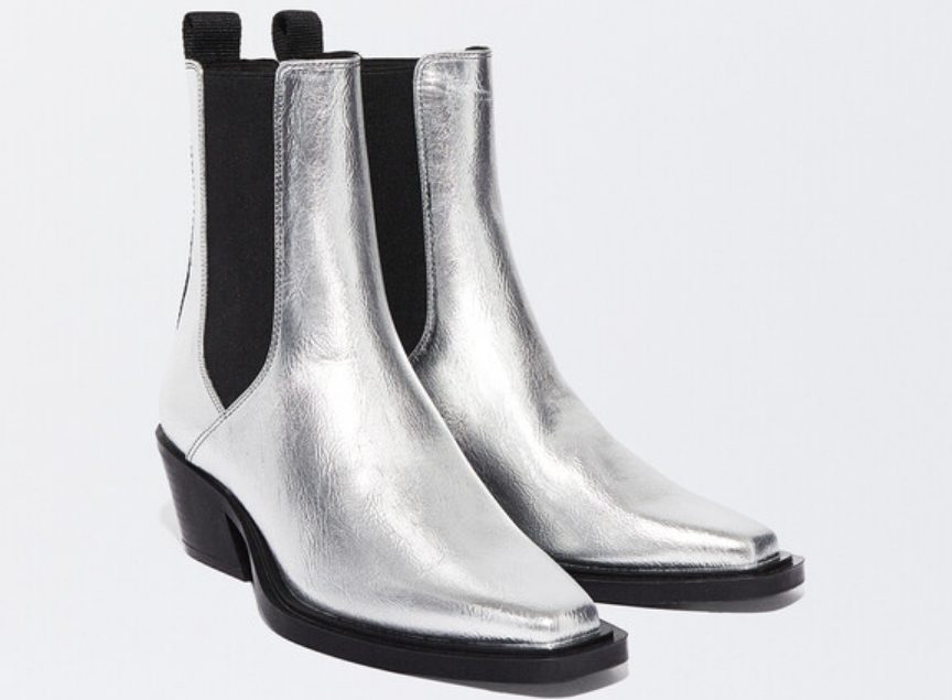 Comencemos con estos hermosos botines metalizados que consigues en Parfois y que están confeccionados en poliéster y poliuretano. Con un hermoso efecto metalizado, estos botines serán perfectos para combinarlos con vestidos, faldas e incluso pantalones vaqueros.