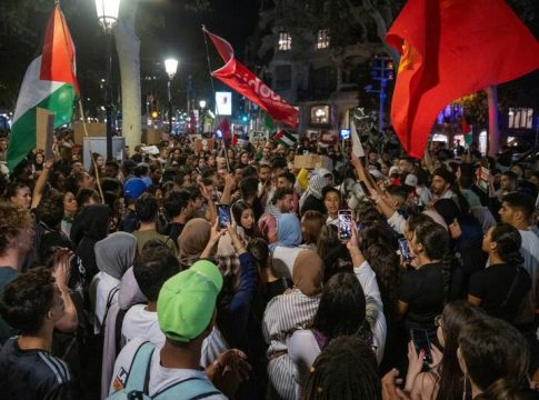 Ya el domingo, tras el ataque de Hamas y el inicio del contraataque de Israel, unas 400 personas se concentraron en la plaza Sant Jaume de Barcelona convocados por las mismas entidades para protestar contra el "apartheid" israelí.