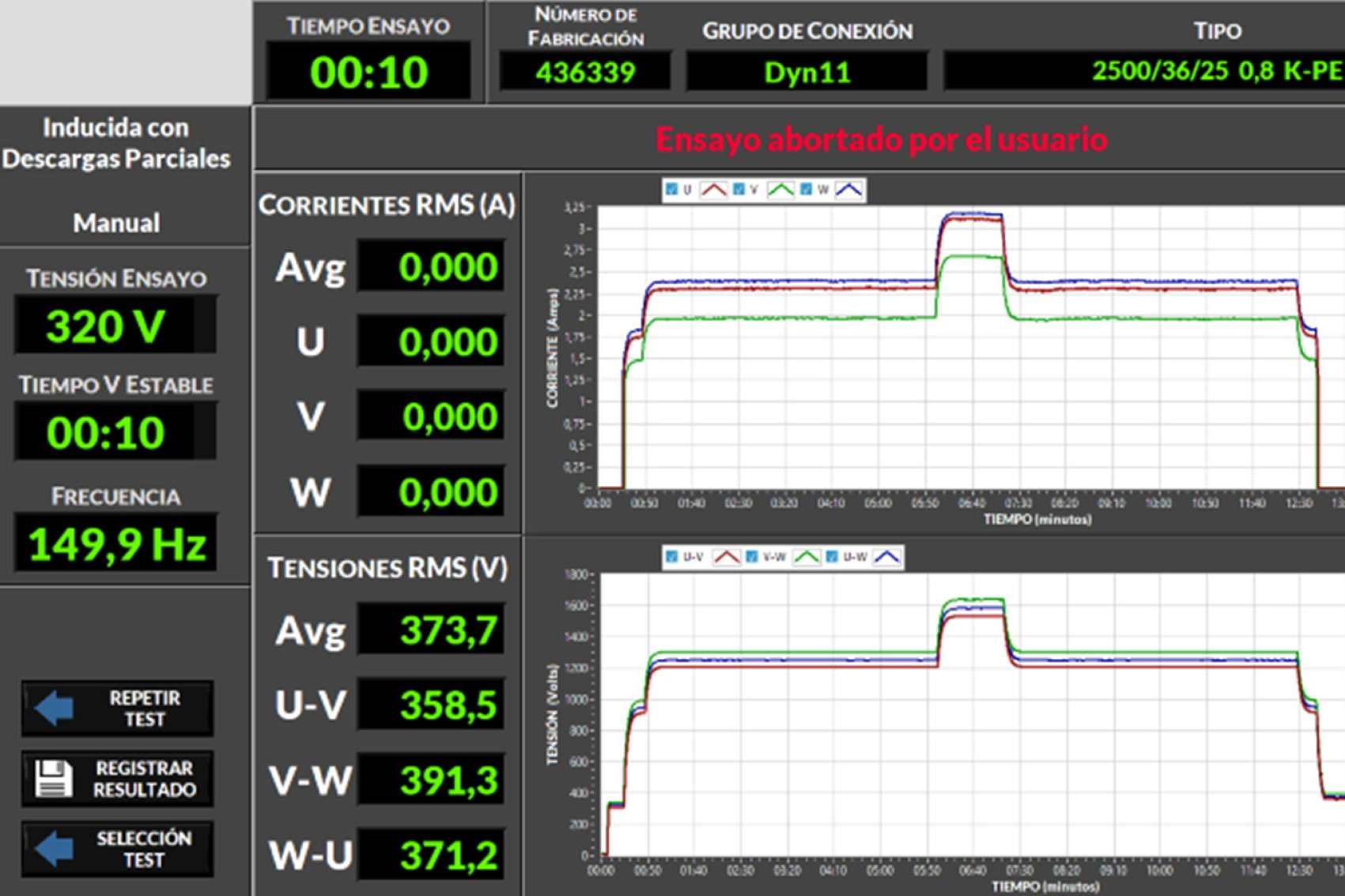 La integración completa del sistema con el ERP empresarial permite la herencia de características del equipo a ensayar y el almacenamiento posterior de los ensayos realizados. Todos los ensayos realizados a lo largo del proceso productivo de transformadores son controlados por este sistema, capturando y almacenando la información de ejecución y los resultados finales.