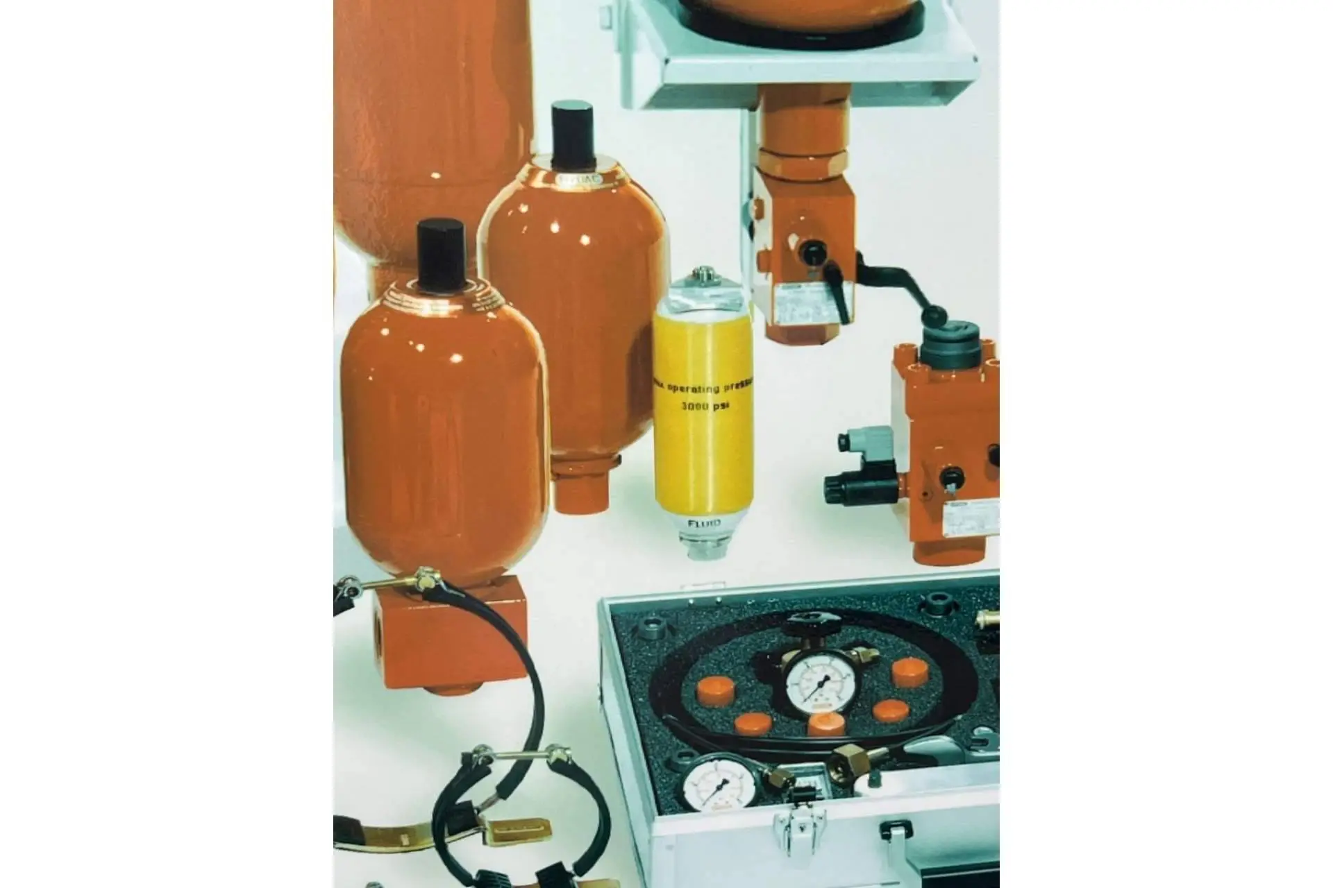Un acumulador es un depósito con un separador de fases, constituidas por gas nitrógeno y aceite hidráulico, capaz de almacenar una cierta cantidad de fluido a presión para auxiliar al circuito hidráulico en el momento que sea necesario. Por ejemplo, cuando se requiera compensar pérdidas de fluido en el circuito. También cuando estos fluidos se dilaten y pierdan presión, debido a cambios de temperatura.