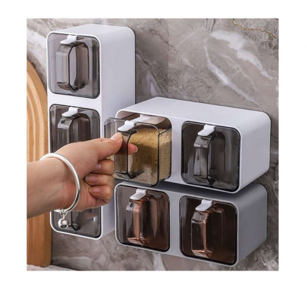Este recipiente de plástico posee dos divisiones para almacenar condimentos como sal, pimienta, endulzantes y diversas especias. Puede ser fácilmente adherido a la pared sin requerir perforaciones, gracias a su potente y resistente adhesivo a prueba de agua. Además, viene equipado con una cuchara dedicada para cada compartimento y una tapa transparente que permite visualizar su contenido. Todo esto por tan solo 5,25 euros.