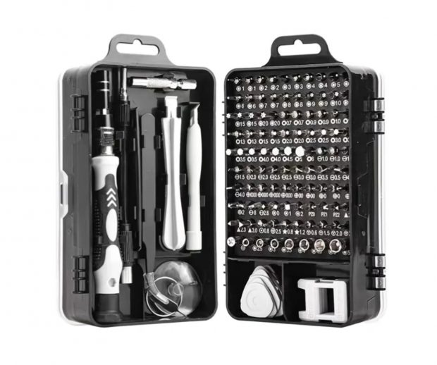 Este conjunto es indispensable para los aficionados al mejoramiento del hogar y la tecnología. Contiene 115 elementos, incluyendo llaves de tornillo, alicates, ventosas, palancas y diversos complementos. Es ideal para el desmontaje y la reparación de relojes, teléfonos móviles, computadoras y otros dispositivos. Se presenta en una caja compacta y de fácil transporte. Su valor es de 8,75 euros.