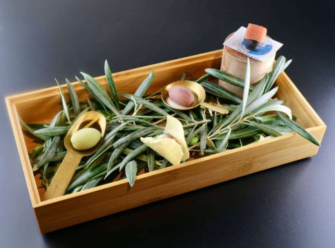 La demostración de cocinas nacidas al borde del mar Mediterráneo creadas por dos cocineros oriundos de la Comunidad Valenciana comenzará con `Bienvenida: Olivos históricos y sus aceitunas´, que incluyen unas aceitunas creadas por el alicantino José Antonio Sánchez, de vermuth con naranja, de un matrimonio sobre patata crujiente, de guiso de hongos, terciopelo de lomo de atún y cítricos, y de ajoblanco de hueva de mújol y gel de manzanilla. Seguirán los 'Aperitivos del Mediterráneo' del valenciano Aitor López que incluyen tomate en conserva aliñado con un escabeche de hierbas y anchoas, una coca de pimiento y tomate con ventresca de atún madurada, y un jugo de pimiento asado aliñado con una espuma de pimiento verde en salmuera. Los aperitivos de ambos se servirán en armonía con Reserva de la Familia Magnum de Juvé & Camps. También de Aitor es el plato 'Cigala', elaborado con cebolla asada, cigala, mantequilla y anisados. Para continuar José Antonio presentará en mesa su 'Sapientia Patros en la Boqueria' que prepara en cenizas de hongos, asada la espardeña, su pil-pil, yema primaria y crujiente de mar. En este caso la elección de la bodega para ambos platos es Juvé & Camps Milesimé Blanc de Noirs. No abandona el alicantino sus notas de mar, en 'Vas y vienes a Santa Pola' donde propone unas quisquillas, emulsión de manzana verde, nieve de su coral, tomate y encurtidos secos. Y con igual intensidad de mar Aitor elabora su 'Ostra', su nombre no esconde que se trata de una ostra del Delta del Ebro al vapor y frita, escabeche de algas y aguacate. Con estos dos platos la bodega catalana quiere sentar armonía con su vino Juvé & Camps Milesimé Xarel·lo. Un meloso de vaca glaseado, praliné de bonito en semi-salazón, granada y altramuz lleva el nombre de 'Cuchara de vanguardia', creación de Sánchez, que también es el autor de 'La reina vestida de rojo', un arroz, mantecado de gamba con ali-oli de coral y cristal de sus cabezas, un plato que demuestra la destreza y experiencia que tiene en la elaboración de los arroces, condición que tienen ambos chefs. Para recrearlos en copa un Juvé & Camps Reserva de la Familia Rosé edición centenario. El punto cárnico de López lo pone su plato 'Castañuelas', de cerdo ibérico, apio, mostaza y croissant, que se acompañarán con el vino Juvé & Camps Pagos de Anguix Prado Lobo.
