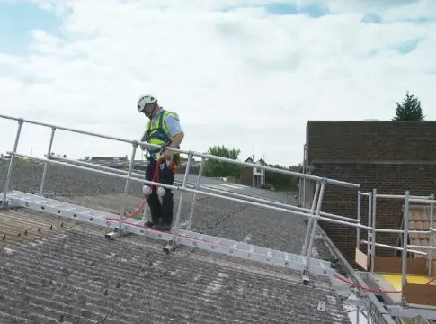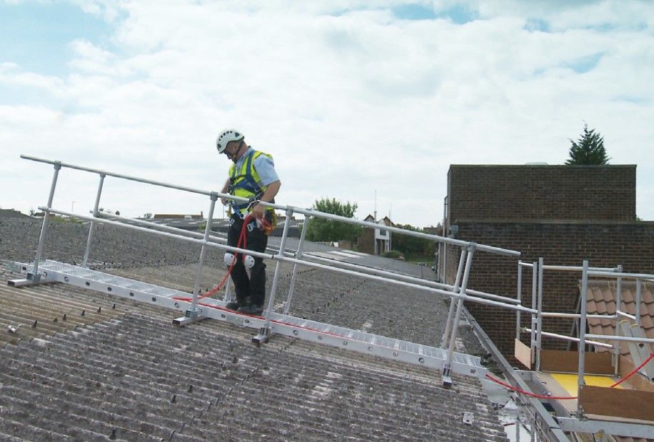 Las principales soluciones de seguridad requeridas para trabajos sobre cubiertas frágiles son fundamentalmente barandillas de protección, pasarelas de seguridad, líneas de vida, plataformas de trabajo o andadores móviles anteponiendo, de acuerdo con la legislación vigente, las medidas colectivas a las individuales.