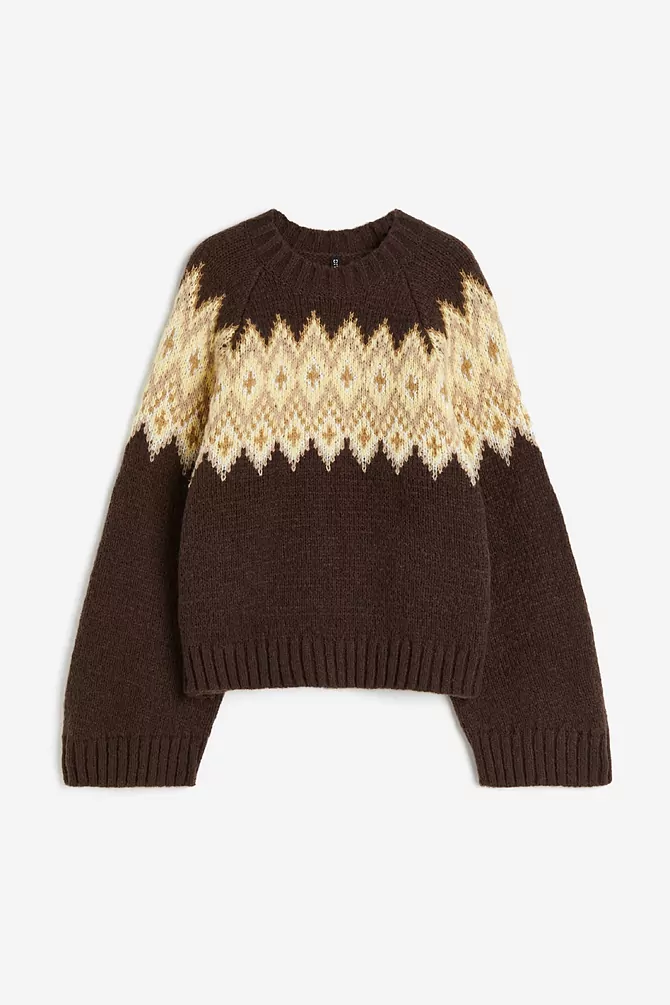 El jersey de cenefas es un clásico que regresa temporada tras temporada. H&M nos ofrece un diseño en tonos tierra por 35,99 euros, perfecto para incluirlo en tus looks casuales. Este jersey te permite abrazar la tendencia de las cenefas de manera elegante y cómoda.