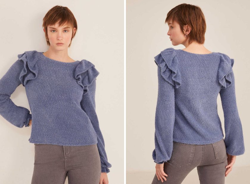 Esta camiseta manga larga que consigues en Springfield, combina delicados volantes dobles en los hombros con goma en los puños. Es perfecta para un día en la oficina, pero también para una ocasión especial. Juega a combinarla con pantalón y zapato adecuado y estarás perfecta. La consigues disponible solo en talla XL y su precio es de 9,99 €.