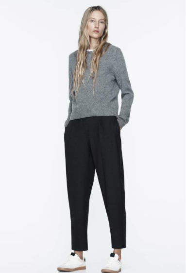 ¿Te gusta un estilo informal y relajado al vestir? Este pantalón negro que consigues en Zara será el que más lleves durante este otoño. Este tipo de pantalón no es completamente largo, sino que, de hecho, te permite lucir tus bonitos zapatos.