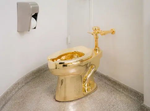 Decir que 5,53 millones de euros es demasiado para un retrete parece evidente, pero era el caso de la obra 'América' del controversial Mauricio Cattelan que se había mudado del Guggenheim de Nueva York al palacio Blenheim en Woodstock, Oxfordshire, la casa donde nació Winston Churchill. El trabajo, evidentemente satírico, se trataba de inodoro hecho con oro macizo, que solo con el material costaba 1.1 millones de euros, nada mal sobre todo al tomar en cuenta que estaba abierto al uso público.
