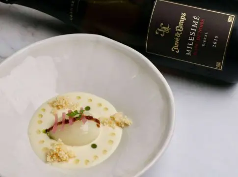 El plato de carne del valenciano sería `Castañuelas´, de cerdo ibérico, apio, mostaza y croissant, que la bodega catalana propondría acompañar con Juvé & Camps Pagos de Anguix Prado Lobo 2018.