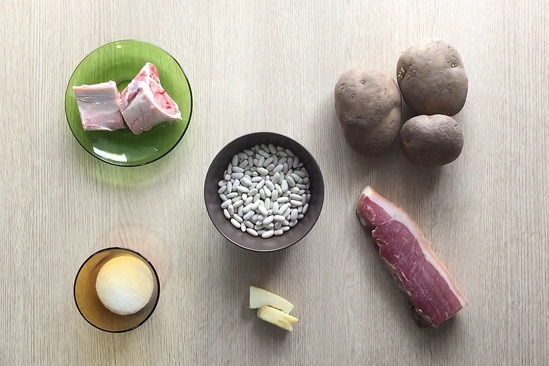 - Opcional: Carne salada de cerdo: costilla, tocino, un poco de morro, un hueso de lacón con algo de carne, soba o espinazo.