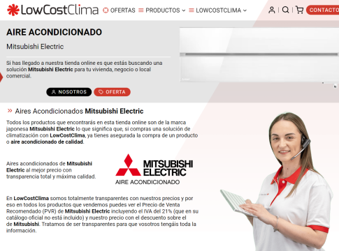 En su web destaca la gama de aire acondicionado split MSZ-LN en gama alta, la gama MSZ-HR como la más económica, y la gama MSZ-BT por su mejor equilibrio entre prestaciones y buen precio. Es importante destacar que los descuentos están disponibles para todos los clientes de LowCostClima aplicando sus condiciones normales de venta.