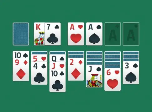 - Configuración Inicial: Se colocan siete cartas en una línea horizontal, solo la primera carta boca arriba y el resto boca abajo. Después, se ubica una carta descubierta encima de la segunda carta invertida, continuando de esta manera hasta alcanzar la séptima columna.