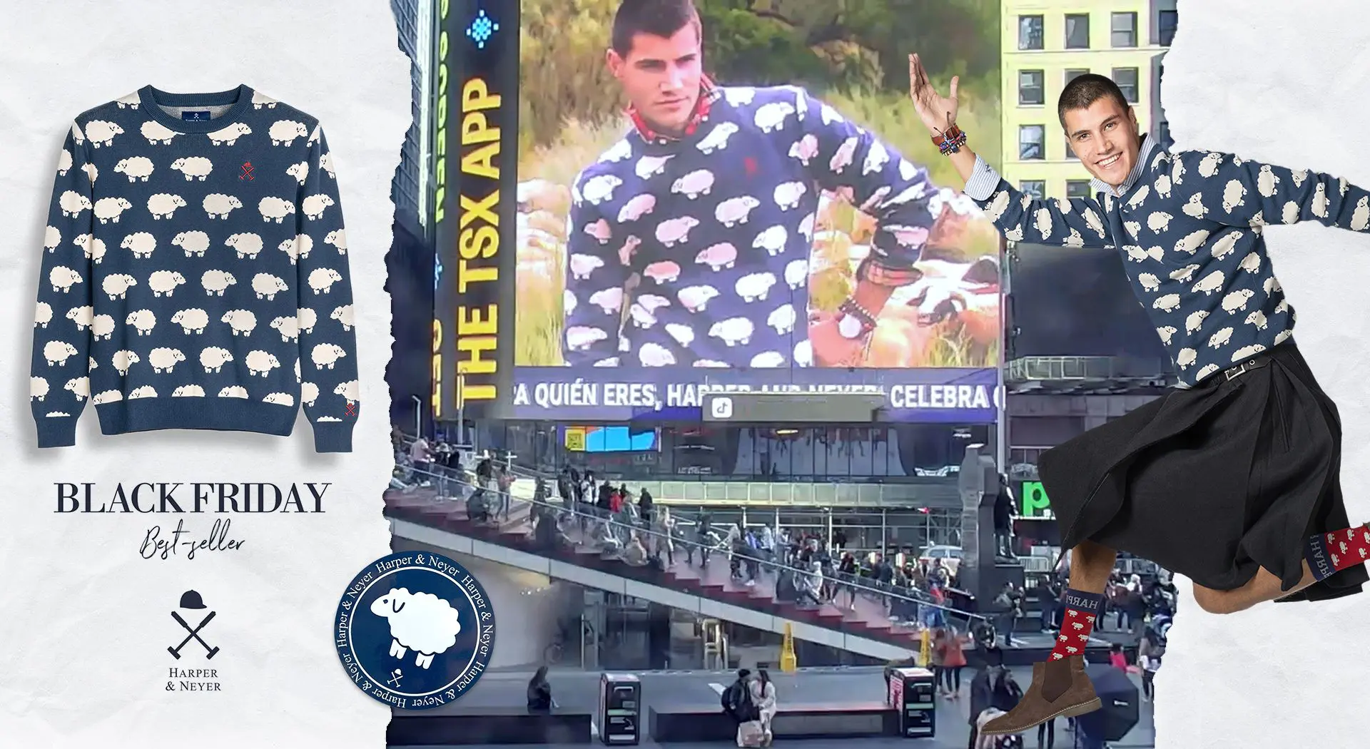 La campaña Black Beeeh Friday usa el jersey Dolly, un producto drop inspirado en los ugly sweaters, como excusa para ofrecer una perspectiva ociosa y resiliente tan fiel a la marca. Desde Nueva York, Dolly se convierte en una insignia para disfrutar en este Black Friday de, entre otras cosas, sus atractivos descuentos.