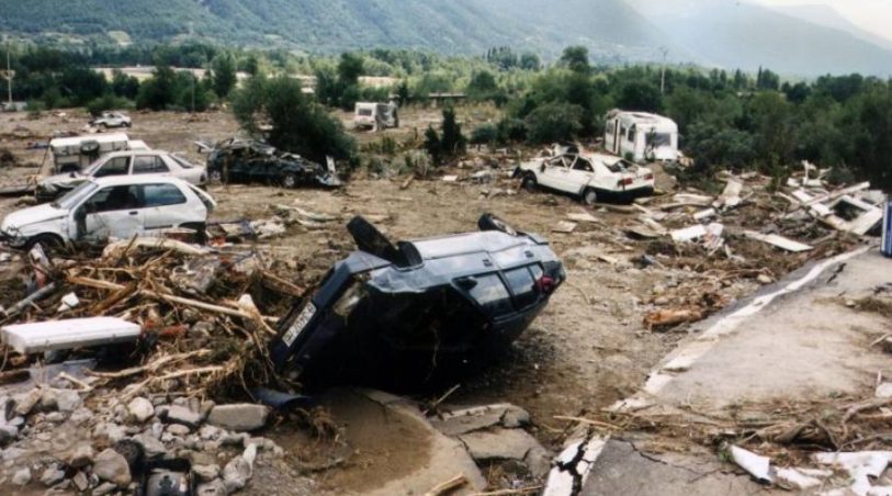 La riada se produjo a las 14:30 horas, cuando una tormenta de gran intensidad descargó más de 200 litros de agua por metro cuadrado en una zona de montaña. El torrente de Arás, que normalmente tiene un caudal de unos 100 metros cúbicos por segundo, alcanzó una velocidad de 500 metros cúbicos por segundo, arrastrando consigo rocas, árboles y vehículos.