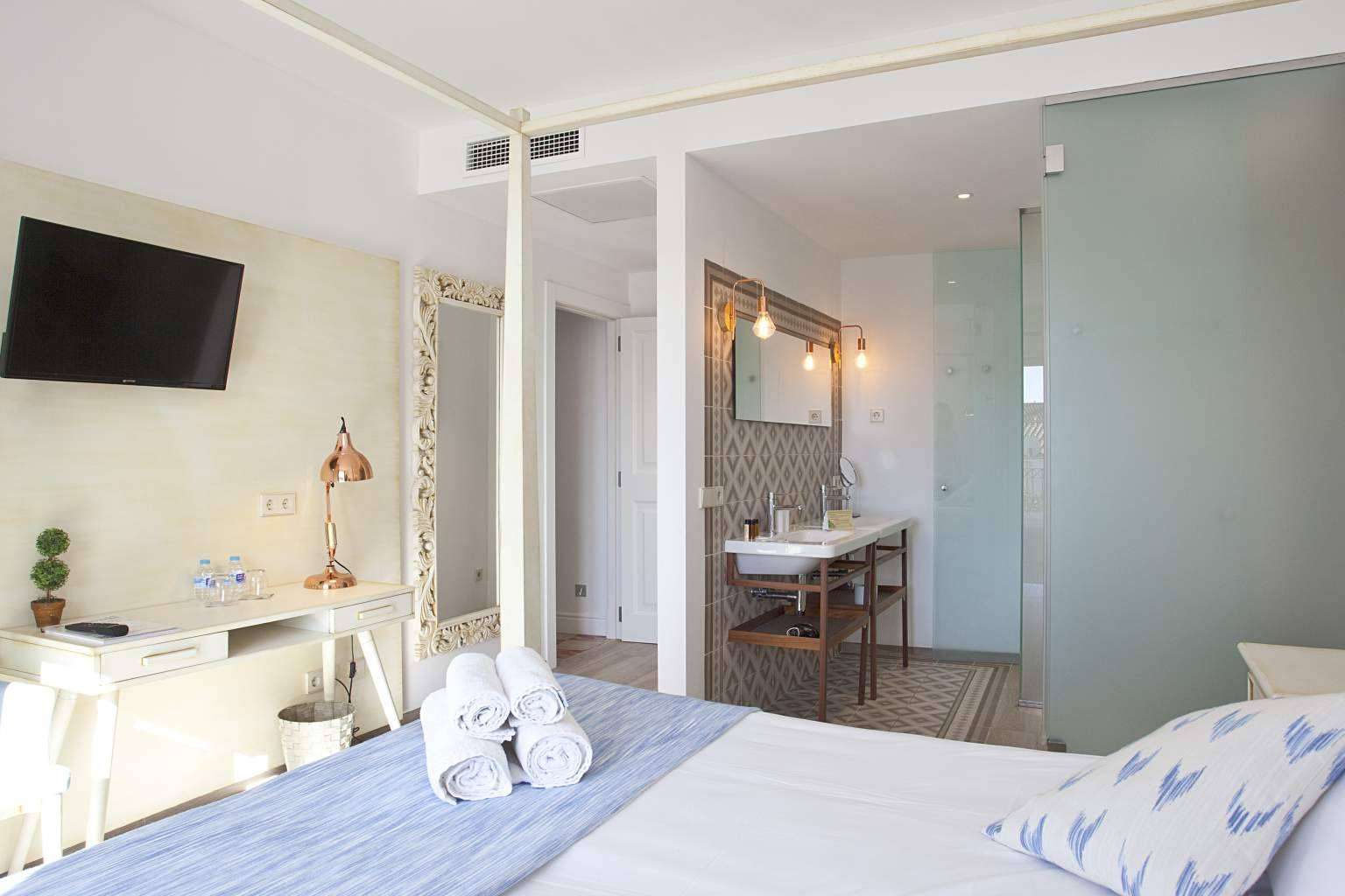 Antes de empezar con ningún plano de construcción, contratamos un decorador, para salir de una idea base; queríamos tener un estilo mallorquín, pero modernizado y adaptado a la actualidad. Conseguimos crear un ambiente diferente para cada habitación, pero con un estilo conjuntado en todo el hotel, sin que ningún elemento desentonara en referencia a nuestro conjunto. Los clientes nos comunican que notan el amor que se ha puesto en la reforma y construcción de nuestro hotel boutique.